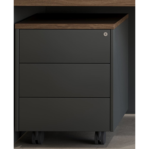 Тумба мобильная 3 выдвижных ящика на колесах, без ручки. Цвет орех и антрацит.
